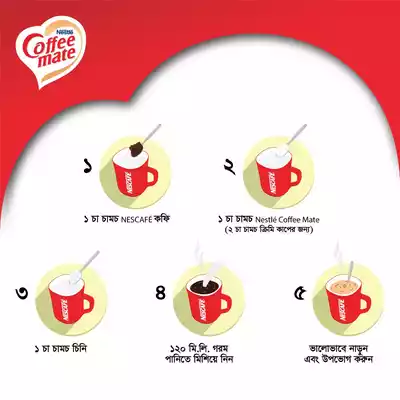 কফির স্বাদকে আরও মজাদার ও ক্রিমি করে তোলার জন্য নিখুঁত সমাধান। এটি কফিতে মেশালে পানীয়টি হয় আরও মসৃণ, সুগন্ধি এবং সমৃদ্ধ স্বাদের। দুধের ঝামেলা ছাড়াই সহজে তৈরি করা যায়, তাই যেকোনো সময় ও যেকোনো স্থানে কফির আনন্দ উপভোগ করতে পারবেন। Nestlé Coffee Mate Coffee Creamer Box আপনার প্রতিদিনের কফিকে করে তুলবে আরও উপভোগ্য ও প্রিমিয়াম মানের।